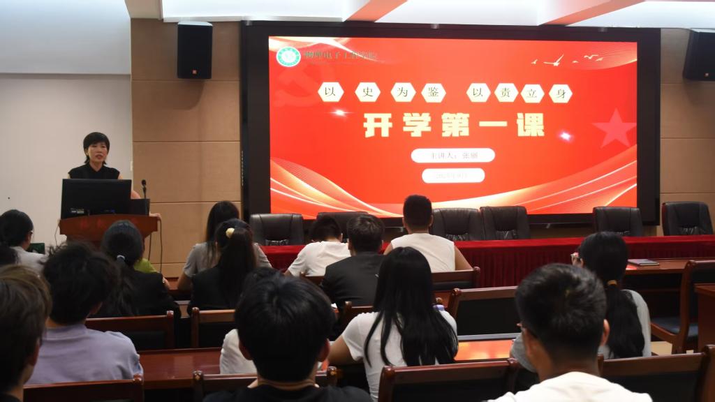 张丽首先强调,假期结束意味着新征程的开始,“收心即是蓄力,归位便要奋进”,鼓励同学们迅速调整状态,以饱满热情与积极行动拥抱新学期的机遇与挑战。随后,她结合纪念中国人民抗日战争暨世界反法西斯战争胜利80周年,围绕“以史为鉴、以责立身”核心主题,深入解读抗战精神中“勇敢无畏、担当奉献、团结一心”的深刻内涵,引导同学们将炽热的爱国情怀融入日常学习钻研、科研探索与社会实践的每一个环节。