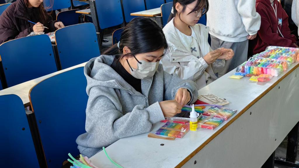 大赛设定了完整的商业闭环,各参赛团队获得等额模拟启动资金,用于采购扭扭棒、陶瓷坯等基础材料。团队需通过创意设计,将原材料转化为具有市场竞争力的手工艺品,并在模拟集市中完成销售,最终以盈利水平决出胜负。这一赛制全面考察了员工的资源整合、产品创新与市场营销能力。比赛现场化身为活力四射的创意工坊和模拟集市。同学们全情投入,精心设计并制作出风格各异的陶瓷饰品与扭扭棒工艺品。在销售环节,各团队灵活运用营销策略,通过特色包装、价值讲解等方式积极推广产品。现场交易氛围热烈,互动频繁,生动再现了真实的商业场景。